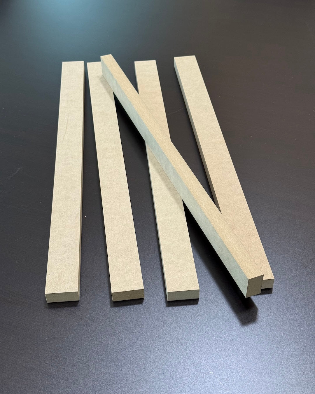 Create bold, modern slat walls with professional precision. These unfinished MDF wall strips install individually, allowing complete control over spacing and layout—even on curved walls. Supplied raw for on-site priming and painting, they’re ideal for custom interior accent walls and feature panels. Available in 1 ½″ or 2″ widths, ¾″ thick, in 8′ or 10′ lengths. Install with adhesive and temporary pin or brad fastening for best results.