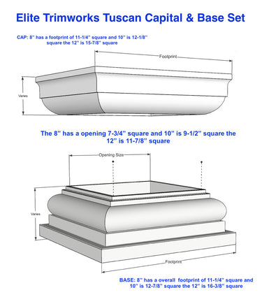 Elite Tuscan Square, Non-Tapered, Base & Capital Set