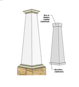 This Column Wrap comes with a Georgian Capital and Base (as shown), beautifully adding approximately 4 1/2" to both the top and bottom footprint of the shaft, enhancing its overall grandeur. For spaces with limited room, the optional Box (Craftsman) Cap and Base, both about 3" high, add only 1 ¼” to the shaft thickness, providing an excellent alternative.