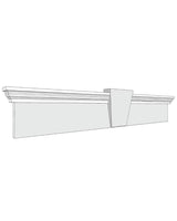 The Crosshead has a solid white finish in either ¾ inch or 1-inch thickness. We recommend painting it to match your trimboard perfectly. The keystone and top moulding are shipped separately to be installed on-site after the base is fastened, concealing the screw heads. The headers are shipped in two sections for longer lengths to reduce shipping costs. In this case, the keystone is used to hide the seam.