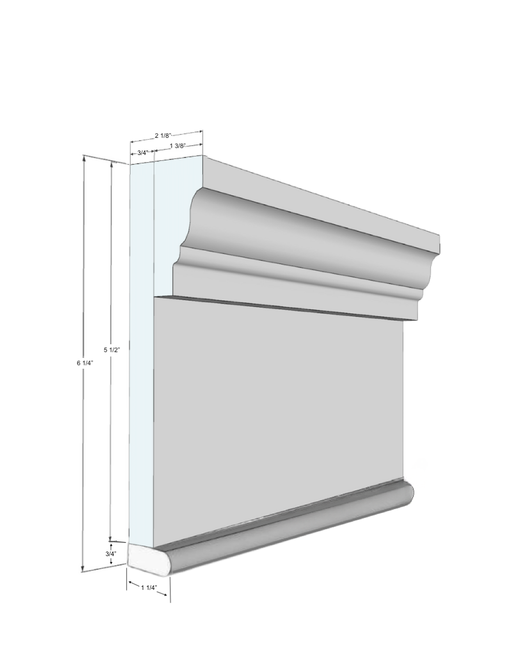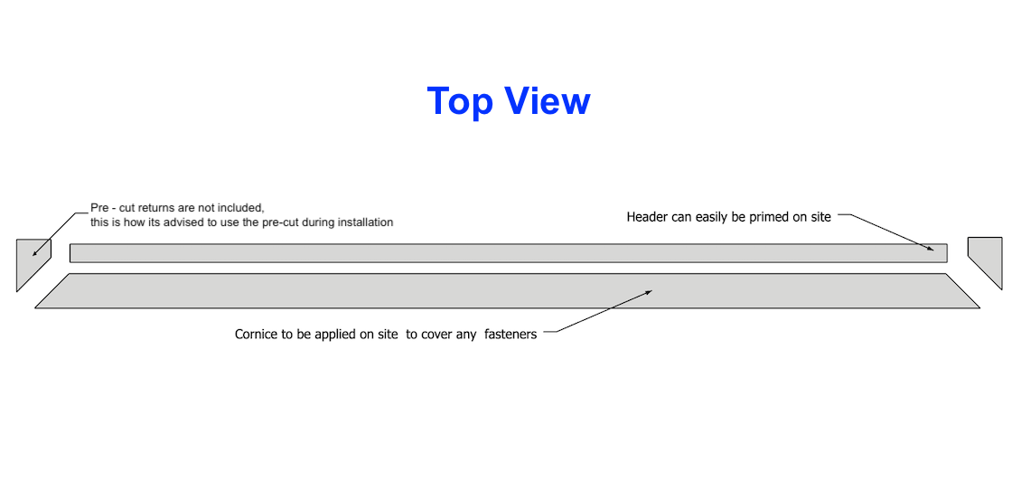 The components of the header are shipped separately to be cut to size, mitred, and assembled on site. We include 1x6 PVC Trimboard, 2" PVC Rams Crown, and 1-1/4" PVC Bead Trim at 4ft, 8ft, or 12ft lengths.