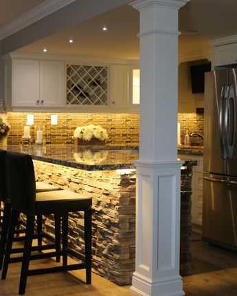 Our Elite Square Column Kits arrive unassembled and are designed for fast installation—with or without an existing post or wall, depending on size. They can even be used as standalone features. Ideal for covering basement jack posts, our columns install faster than drywall—simply glue, pin, or nail them into place.  They’re perfectly matched to our wainscoting products.