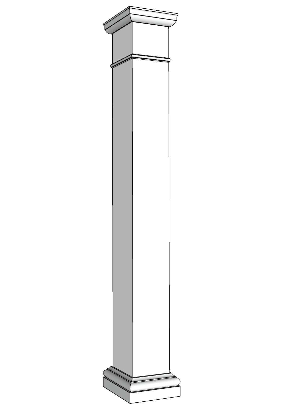 • Both the capital and base add 1-1/4" to the shaft size, resulting in top and bottom footprints of 8 ⅞"