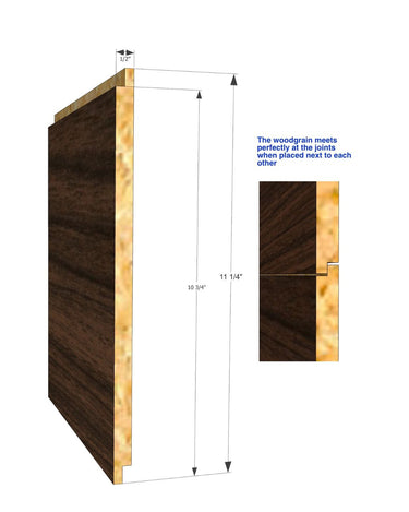 These Shiplap Planks are 11 ¼ inches wide, ½ inch thick, and 8-10 feet long, featuring shiplap ends for a seamless wall appearance.
