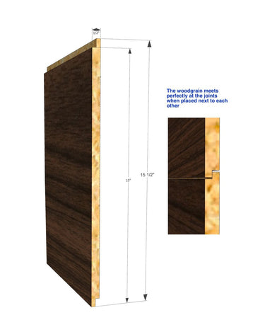 These Shiplap Planks are 15 ½ inches wide, ½ inch thick, and 8-10 feet long, featuring shiplap ends for a seamless wall appearance.