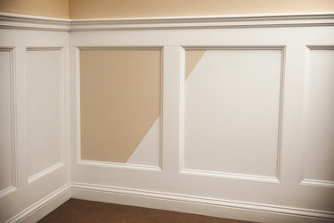 Shaped Wainscot Stile, in primed MDF, 4 ½" x ⅝" thick, at various lengths and shaped at both ends.