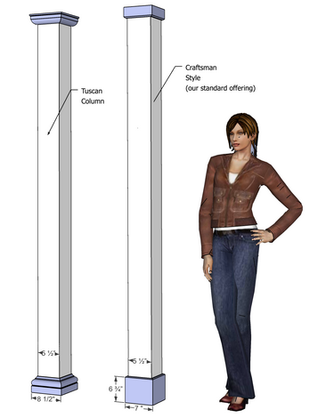 The column shaft itself is 5 ½" square, and the Craftsman Style Base and Capital add 1 ½", making the overall footprint 7"; the Porch Base is 1" thick, making the overall footprint 7 ½" thick. We include the mounting hardware for the Capital & Base.