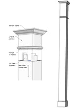 Our 9ft (Two-Section) columns are made specifically for easy UPS shipping! The column shaft is shipped in two sections ( 8ft + 1ft = 9ft ) that fit together on site. The 9ft (Two-Section) column always comes with an astragal trim and mounting cleats as shown on the drawing.
