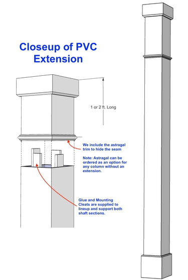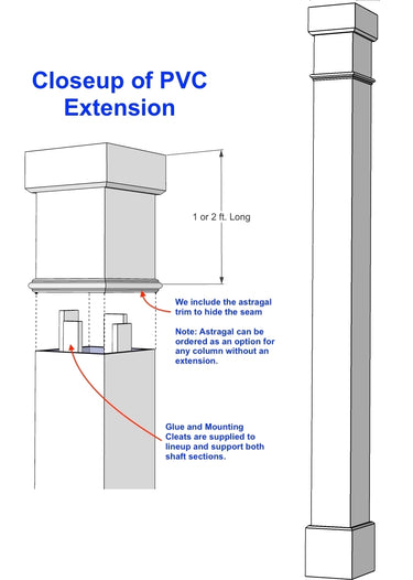 Our 10ft (Two-Section) columns are made specifically for easy UPS shipping! The column shaft is shipped in two sections ( 8ft + 2ft = 10ft ) that fit together on site. The 10ft (Two-Section) column always comes with an astragal trim and mounting cleats as shown on the drawing.