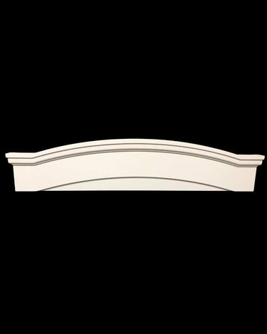 The Arched PVC Header comes in various lengths; its height is 10 ½,” and it is approximately 1 ¼” thick. Its solid crown projects about 2 ⅞” and is priced per running foot. We can customize the header's length to your specifications with precision up to ⅛". The header is crafted from smooth cellular PVC, using ⅜" and ¾" thick sheets.